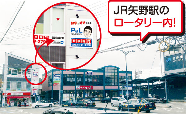 JR矢野駅(広島市安芸区)ロータリー内にあり、車での送迎や学校帰りの通塾など、通いやすい環境!