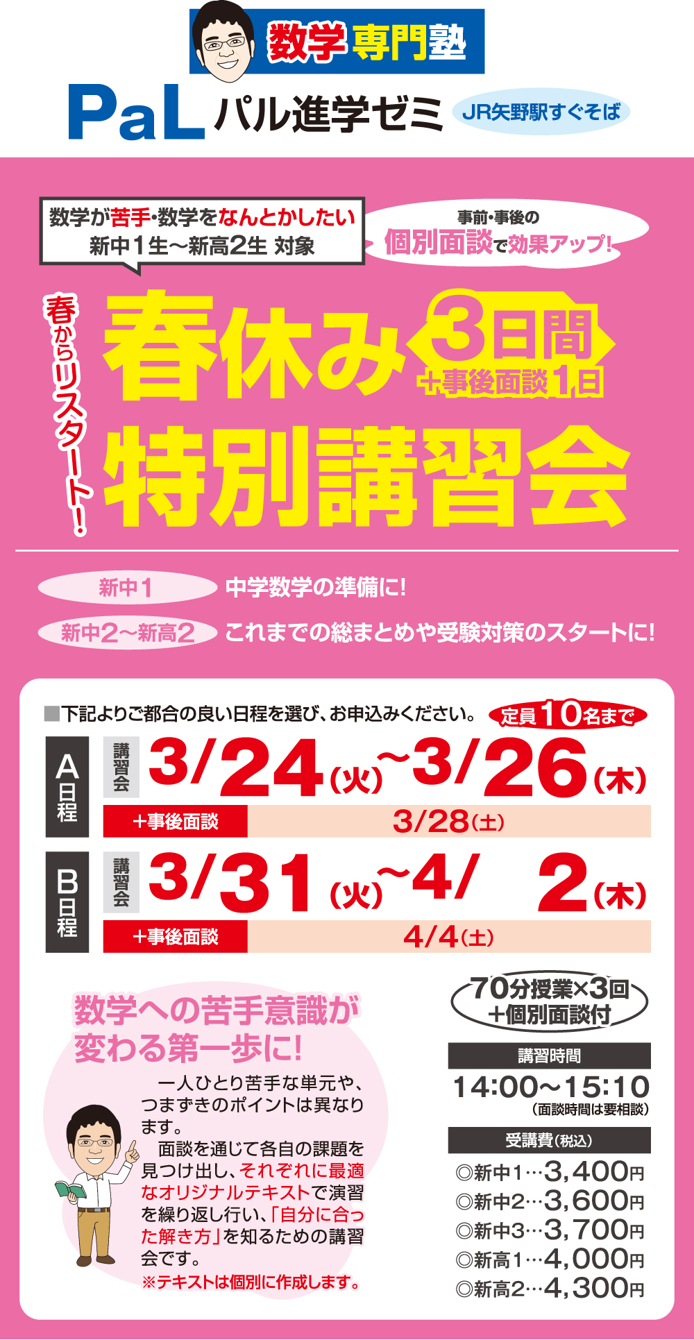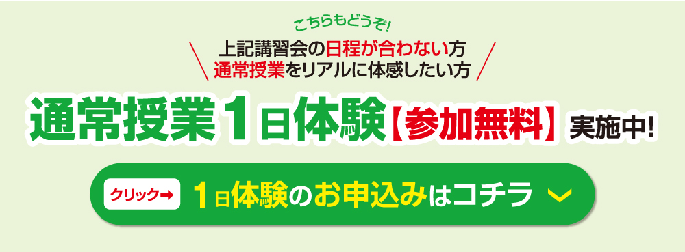 ※講習当日、やむを得ず欠席された場合、振替授業(無料)必ず実施しますので、ご安心ください。